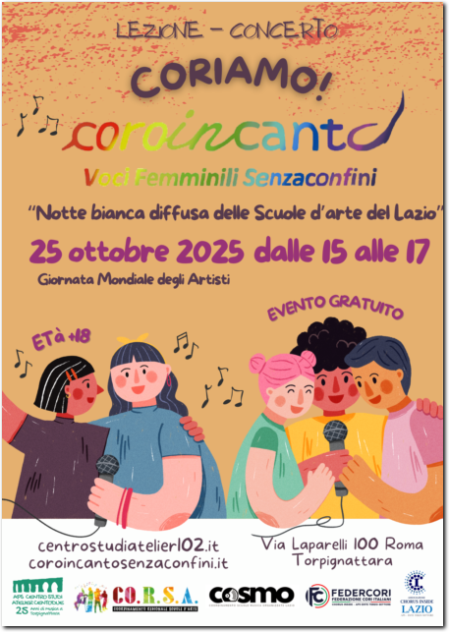 Inoltre partecipiamo o organizziamo eventi a Roma, in Italia e anche all'estero con le formazioni corali:
