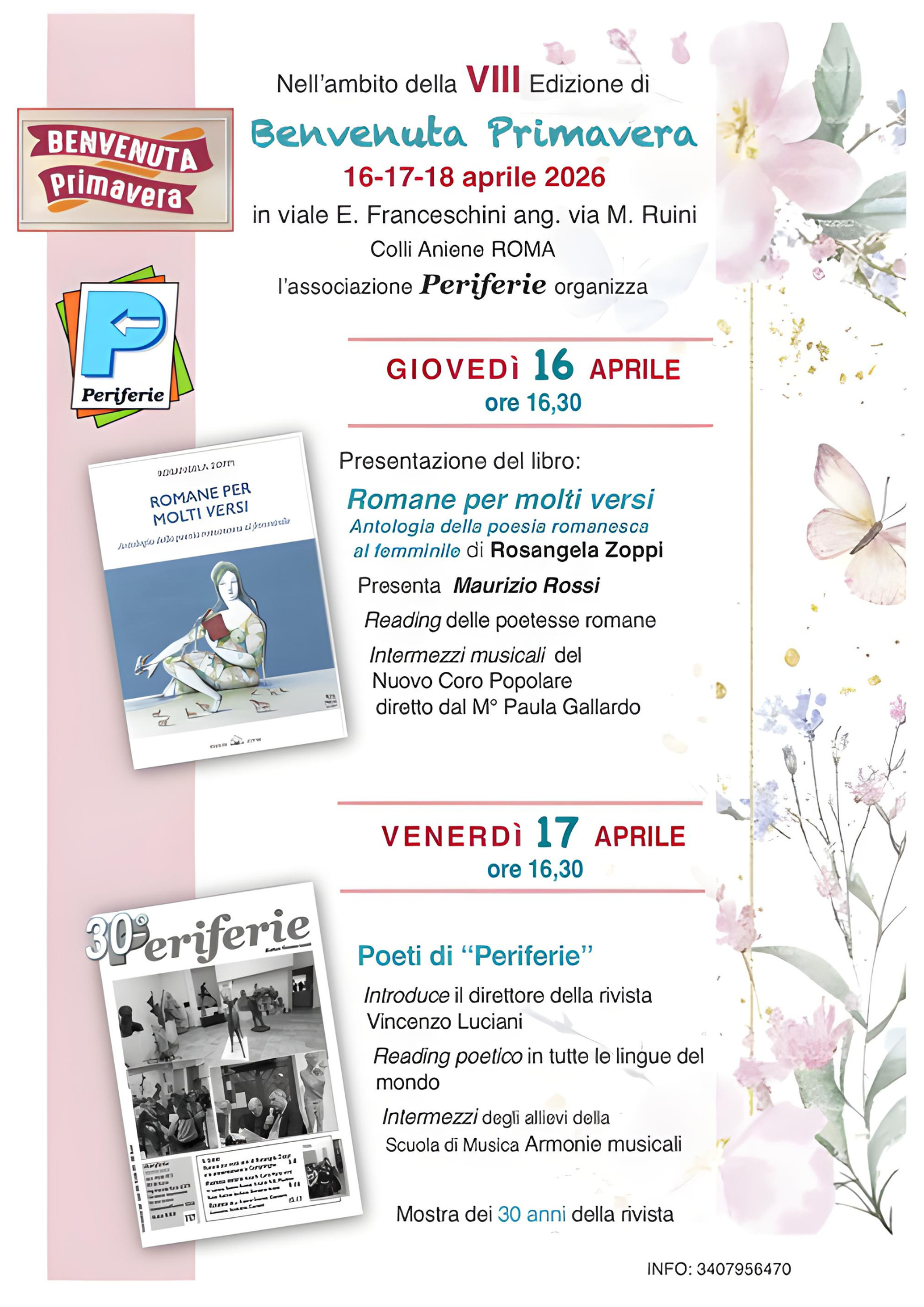 La presenza del Nuovo Coro Popolare rappresenta un valore aggiunto per l’intera rassegna Benvenuta Primavera: un ponte tra musica, poesia e narrazione, capace di creare un’atmosfera accogliente e partecipata per accompagnare la presentazione del libro Romane, della cara amica Rosangela Zoppi.