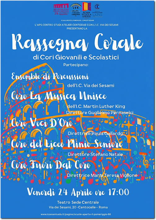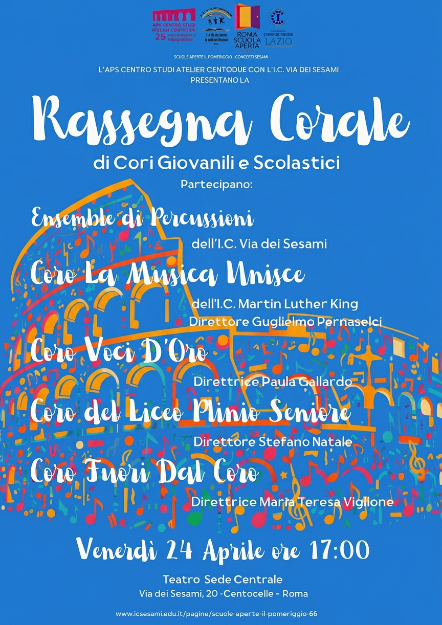Inoltre partecipiamo o organizziamo eventi a Roma, in Italia e anche all'estero con le formazioni corali: