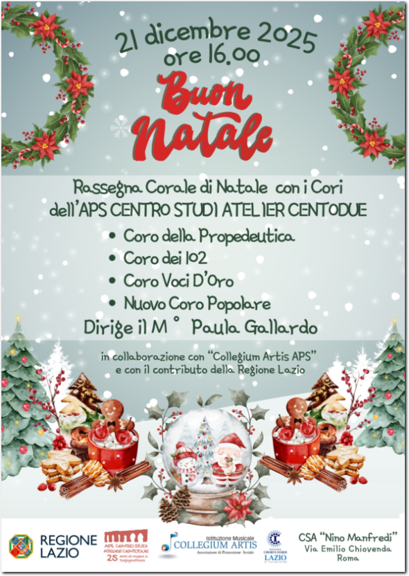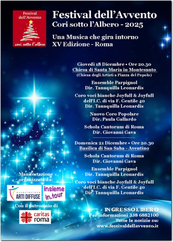 Inoltre partecipiamo o organizziamo eventi a Roma, in Italia e anche all'estero con le formazioni corali: