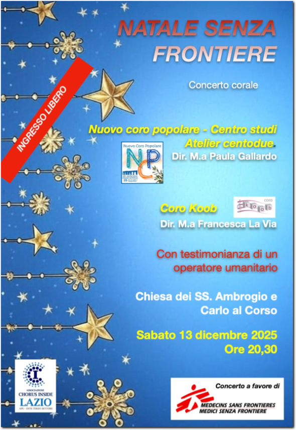 Il Nuovo Coro Popolare e il Coro Koob cantano insieme il Natale a favore dell'Organizzazione "Medici senza Frontiere".